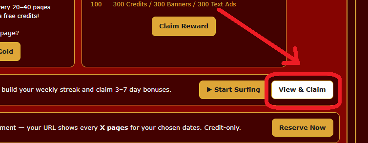 We have 5 levels of account upgrades which not only allow you to add banners and text links as well as more sites but also get you a better view/surf ratio and a Bag full of ads too.