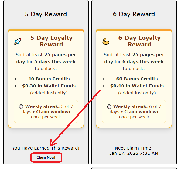 Follow your daily routine: spend just a few minutes a day browsing the 25 pages of each site. After completing your first 7 days, you’ll have accumulated $9.